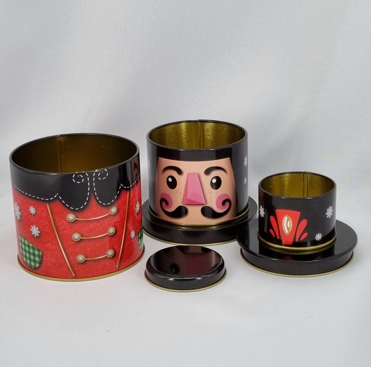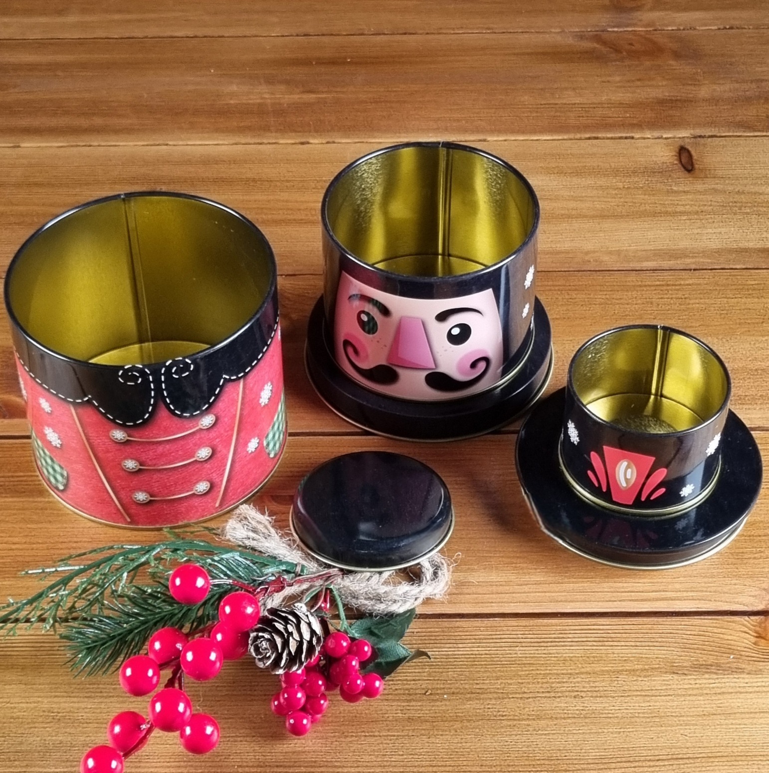 Készülj fel az ünnepekre ezzel a különleges, diótörő alakú fém díszdobozzal, ami garantáltan mosolyt csal mindenki arcára! Ez a bájos doboz nem csupán egy szívmelengető dekoráció, hanem rendkívül praktikus tároló is, mely három különböző méretű, egymásra helyezhető részből áll, és mindegyik külön zárható.