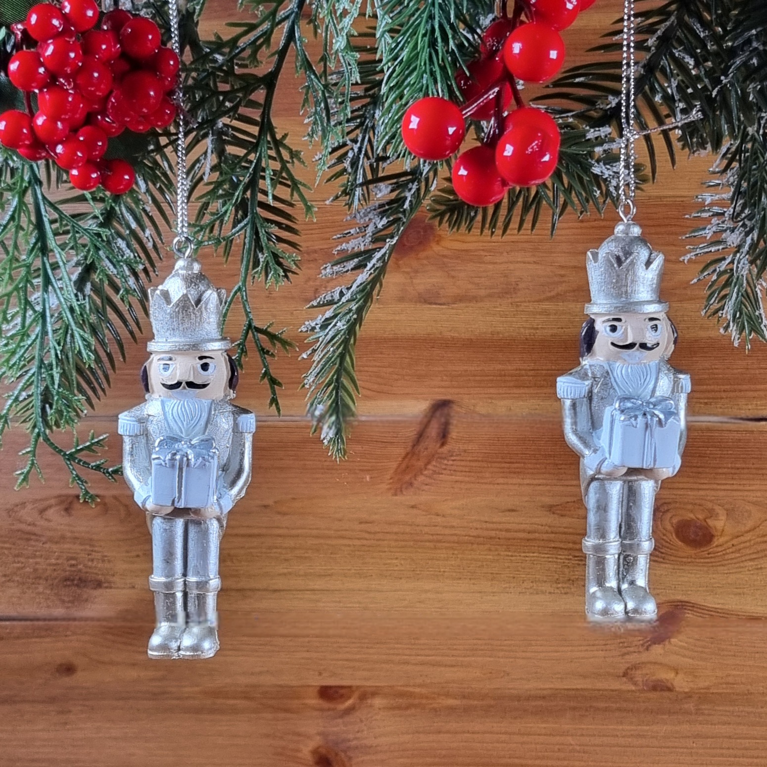 Hozd be a klasszikus karácsonyi mesék varázslatát a karácsonyfára ezekkel a gyönyörű diótörő díszekkel! A részletgazdag, katonás viselet, a pompás kalapok és a gondosan megfestett arcok igazán exkluzív megjelenést kölcsönöznek nekik. Ezek a figurák egy csipetnyi hagyományos eleganciát visznek a karácsonyfádra. Tökéletes kiegészítője egy hagyományos, ünnepi dekorációnak, de modern környezetben is nagyszerűen mutat.