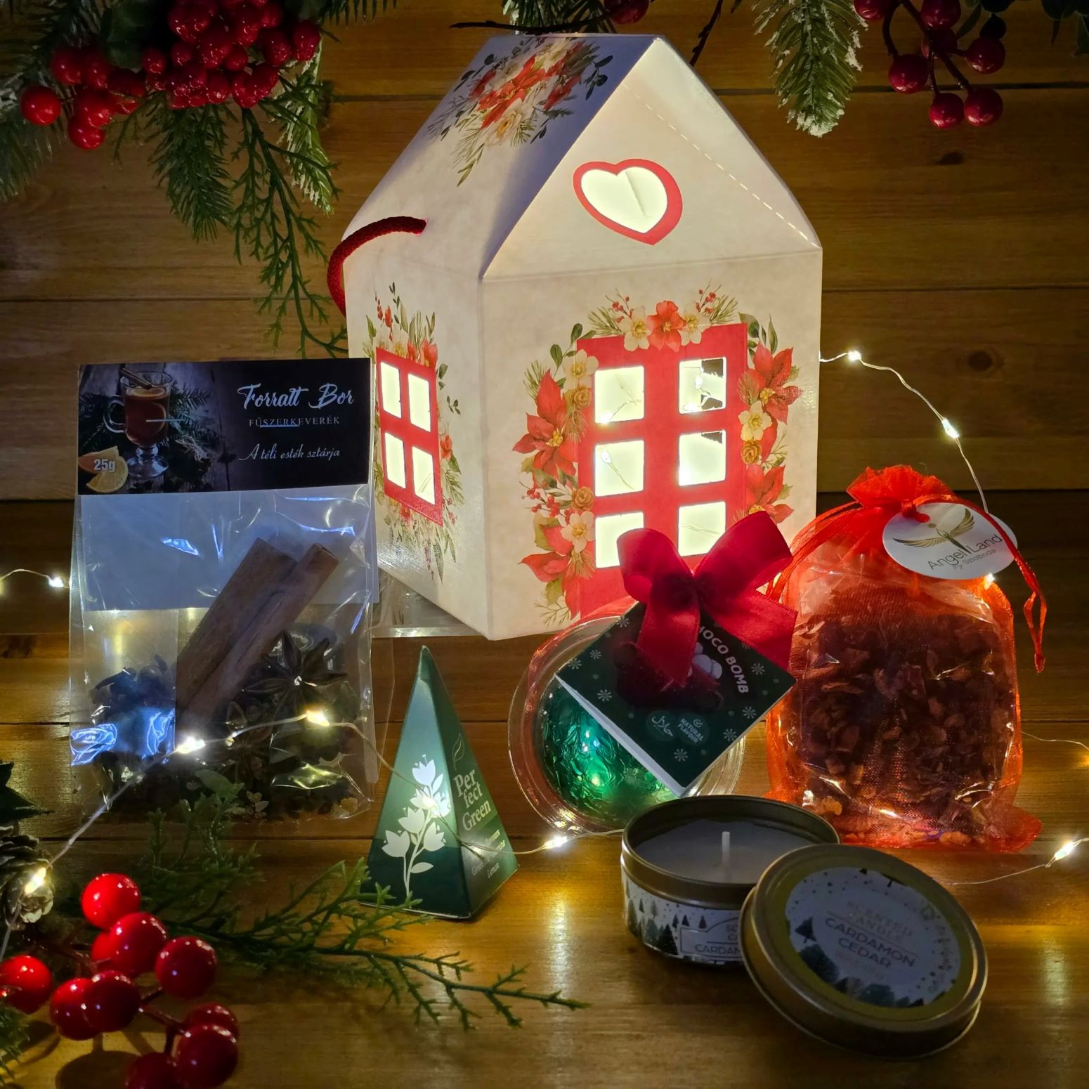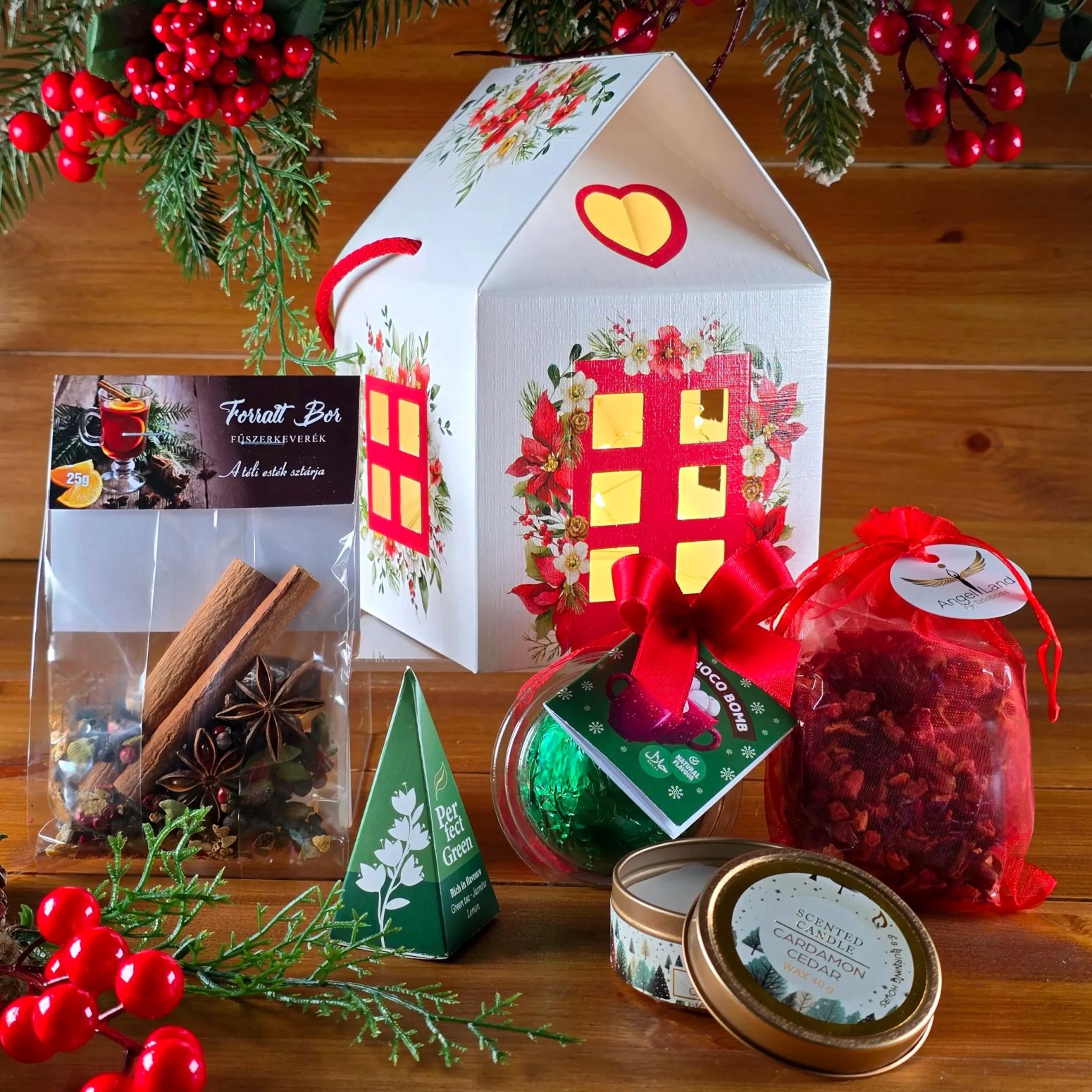 - 1 db 50 g-os karácsonyi szálas teakeverék – organza dísztasakban