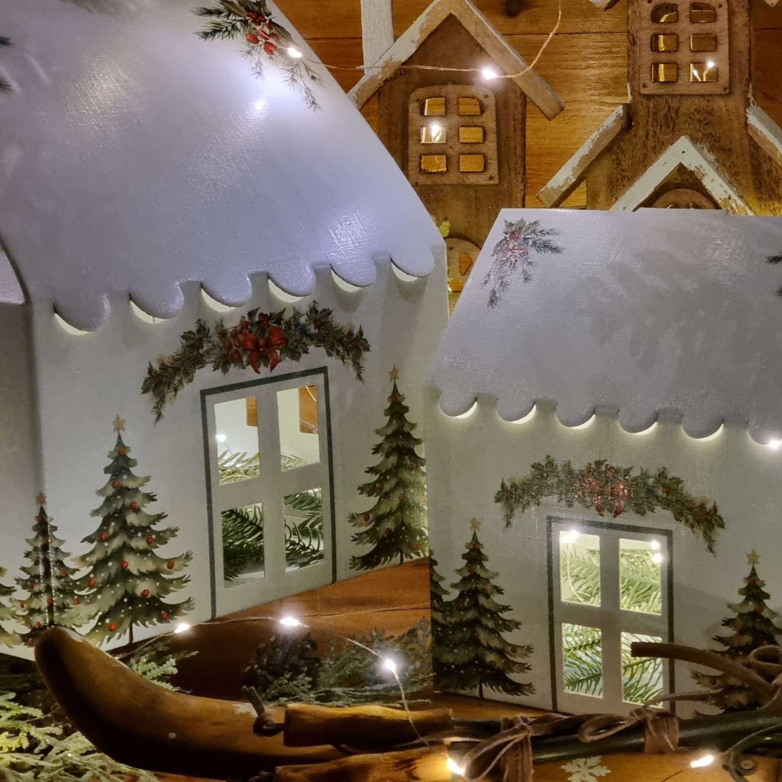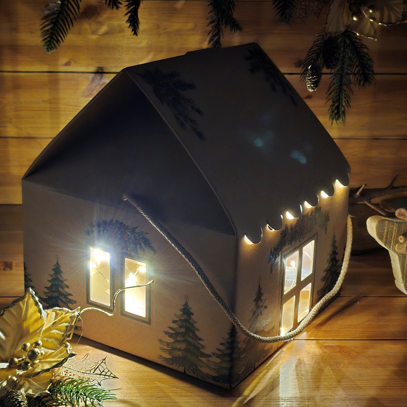 A LED fényfüzérnek köszönhetően a házikó ajándék átadása után stílusos, világító karácsonyi dekorációvá válik.