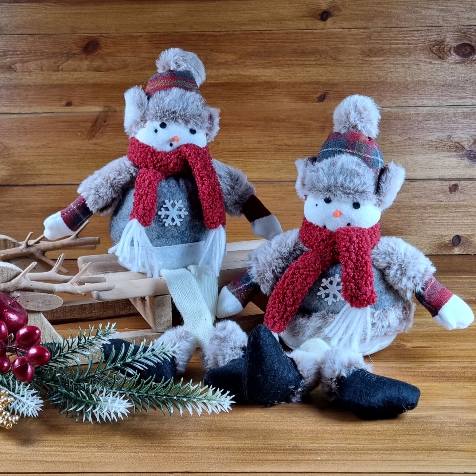 ​Dobd fel otthonod karácsonyi hangulatát ezzel a bájos, lógólábú plüss hóemberrel! Puha anyagból készült, és minden részlete gondosan kidolgozott: egyedi, kockás sapkát és sálat visel, plüss szegéllyel, és apró gombok díszítik a hasát. A hóember tökéletesen mutat a karácsonyfa alatt, a kandalló párkányán, de akár a polc szélén is. Igazi, otthonos hangulatot varázsol a lakásba!